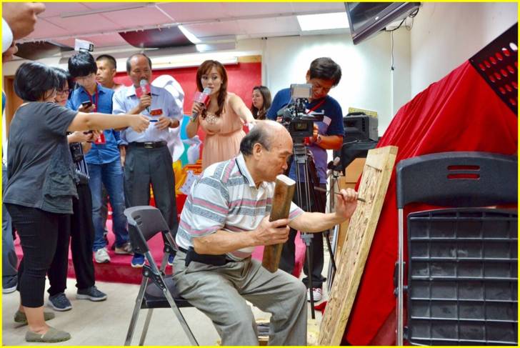 國寶級大師 李子旺 在記者會現場示範傳統的佛雕技藝-「魁星」