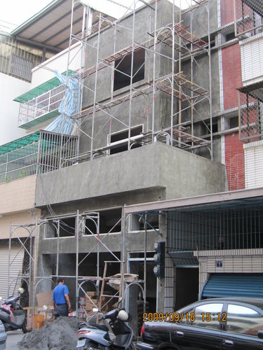 高雄老屋翻新分享 高雄防水工程 外牆翻修 一樓至二樓外觀的石片是另外挑選的, 重點在於它的時間性. 因為石片(以及洗石子外牆)經過日曬雨淋之後都會有水垢或長青苔, 但做工程的人多半都會告訴屋主:那是正常的!沒錯! 以不負責任的工法來說, 那是正常的, 但其實只需要在石片的表面塗裝兩成的防撥水金油就可以長保如新了‧ 另外, 我們在二樓陽台搭建的不是像隔壁綠色的採光罩, 因為一般採光罩很容易熱脹冷縮而裂開, 我們用的是〞塑鋁板〝,它沒有上述的問題,是非常耐用的建材, 值得推薦! 其實它有很大的差別。