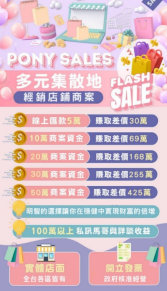 「Pony sales多元集散地」套養殺 繳納資金不給提領【網友不會幫你賺錢、請勿聽信網友投資】