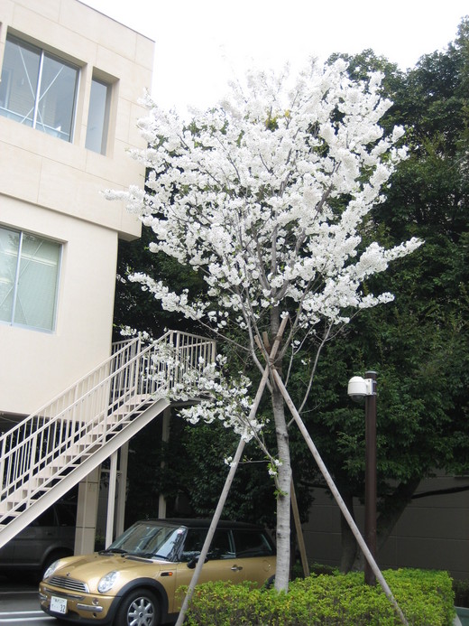 在我們住的飯店旁邊有一顆盛開的白櫻花
