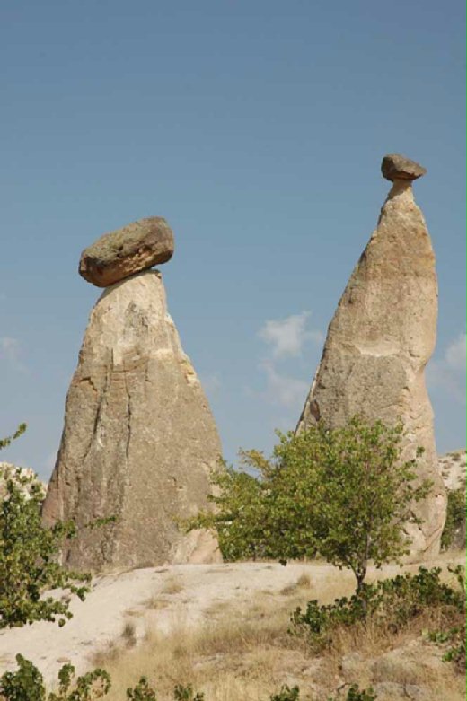 卡帕德基亞四周盡是大小不一的香菇岩,傳說這些外觀乍似煙囪的岩石以前曾住過精靈們,因此又被稱為精靈的煙囪。也有人說,這些奇形怪狀的奇岩怪石很像男生的生殖器官,你們覺得呢?