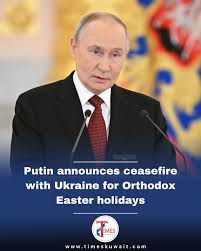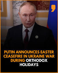 Russian President Vladimir Putin has declared a 32-hour ceasefire with Ukraine for the Orthodox Easter holiday, following an earlier offer from Ukrainian counterpart Volodymyr Zelensky for a pause in hostilities.