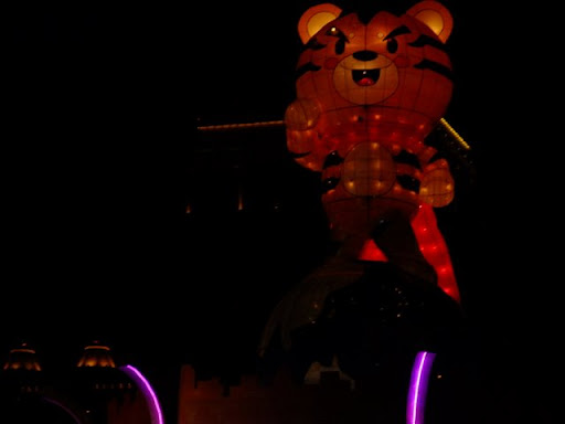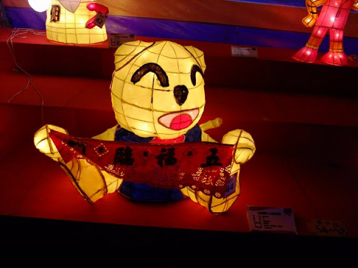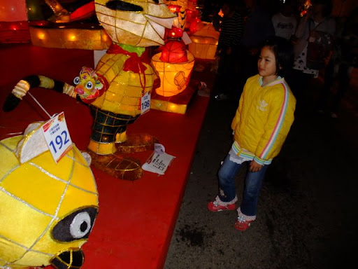 每年都參加台北燈會,今年改參加桃園燈會,果然很不一樣. 在桃園縣經國路上遇到麥當勞右轉的文建會藝文園區上的桃園燈會. 有數百盞縣民製作中小花燈,應該是一場花燈比賽,而且有許多耳熟能詳的卡通花燈. 女兒看得很興奮,一直在找她認識的卡通人物. 各鄉鎮的特色產品及小吃,很有夜市的感覺,很熱鬧但又不擁擠. 我當場吃了五個大溪豆乾,然後再買一包回家. 女兒則吃大阪燒吃的飽飽的. 然後我們去排隊拿花燈. 在會場左右兩側隊伍,各發送4000個精美手提燈,我們從6點半開始排,七點開始發送,排沒多久就拿到了,我在台北從沒拿過手提花燈. 感覺很不錯,明年會再來. |