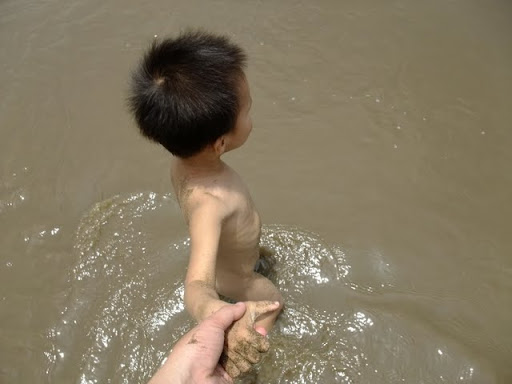水很淺,平常是很清的,大概是前一陣子老下雨,水變得黃黃的。