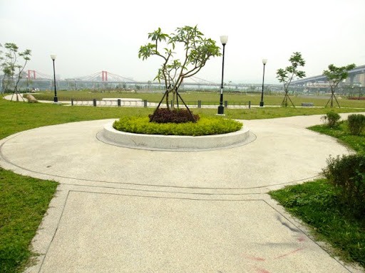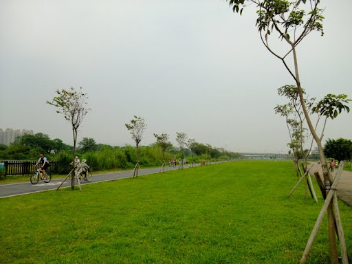 騎車騎累了,還可以到河濱公園內走一走,散散步。