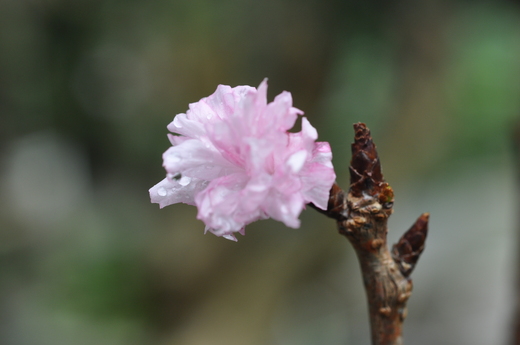 今年的櫻花開早了 才十一月下旬,沈大哥放在秋園盆栽中心內的櫻花就已經開了,這是一顆盆景樹,品種不可考,花朵是複瓣粉白色的,枝頭的花苞蠻多的,過些日子,就應該可以開滿枝頭。 前幾天,才從新聞報導上聽說,玉山已經下了第一場瑞雪,積雪還有五公分高,這幾天又看見夕陽西下的天邊,有火燒雲的奇景,看來地球暖化,反聖嬰現象的氣候異常,將會揭開變異天象的序幕,人類應深自反省,該重視環境保護了! |