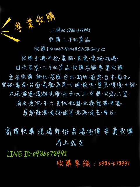 小胖3C 0986-078991新店/士林/北投/中山/內湖/林口/台南/安平/高雄/鳳山/旗津/三民/小港 二手中古3C,S8要賣/二手中古手機要賣/筆電要賣找小胖/二手中古電腦要賣找小胖/iphone7,8要賣找小胖/當票要賣找小胖/電視要賣找小胖/急用缺現金