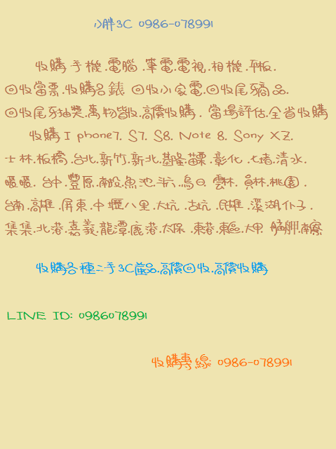 小胖3C收購0986-078991 秉持<專業><用心><誠信>為所有來電的顧客提供最專業最即時也最合理的報價與諮詢.無論是二手電腦.筆電.手機.電視.相機.平板.遊戲機.禮卷.汽機車.名牌包.當票.我們通通都有收購的服務.小胖3C收購在第一時間安排業務同仁與您進行交易作業.