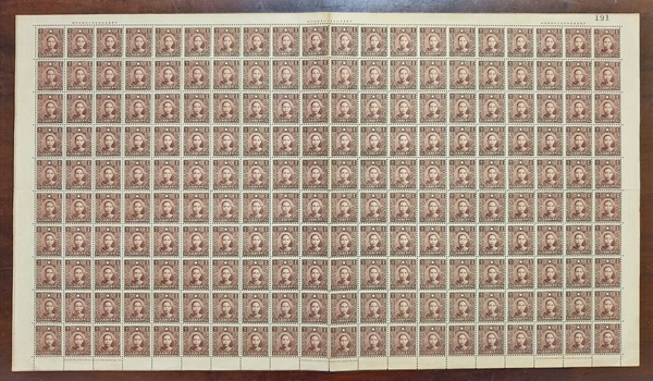 1943年8月1日起,汪偽郵政總局正式自行發行郵票,又為因應11月1日起郵資收售中儲券之新制,先於11月1日由上海郵局集郵組發售4種暫售票,再於11月22日起陸續發行其餘加蓋「暫售」字樣之暫售加蓋票,同日,汪偽當局亦就在庫未售之豆沙色1角5分票原票,提撥少量於集郵組一併對外出售,但每人先購6枚,此票一出轟動上海郵界,因知此票將大量用於加蓋使用,原票存量必然稀少,故此票一出當即銷售一空,然部分與郵局要員交好之上海郵商,仍用盡心機搞到一些200全張之版票分撕加價出售,故市面仍能見到4、6、8、10、20、25、50方連不等方連票,也正因如此,此票200全張就更為罕有了。