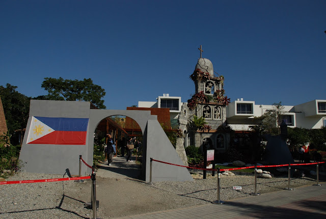 菲律賓在長達300年的西班牙殖民統治下,鑄造出今日的天主教、建築、藝術的主流。 這個圍城的造型很吸睛。菲律賓庭園的水準在我心目中可以排到前五名。 庭園內陳列了一些菲律賓的文化、景點與藝術訊息,製作得十分用心。這個面具有點像威尼斯嘉年華會的華麗面具。 由於太精彩了,所以多放了一些相片。