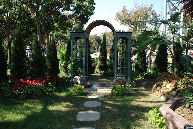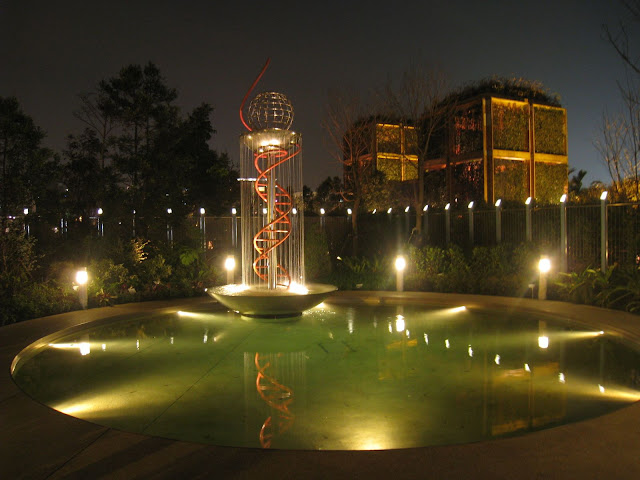 寰宇庭園區為AIPH國際級戶外庭園競賽,區內參展的共21個國家、26個城市、28個參展機構,包括希臘、英國、荷蘭、匈牙利、泰國…等等,展現出世界城市的庭園景色,來自歐、亞、美、大洋等四大洲各國的不同風情,不論是歐洲特有的浪漫情懷、美洲自由不拘的風格、亞洲富含宗教與建築特色風俗與文化,世界城市的庭園景色,讓遊客穿梭其間一次飽覽。(文字引用花博官網) 花博會裡有兩處最具「國際味道」的展區,除了爭豔館的國際型特展-國際室內花卉競賽及洲際盃花藝競賽,再來就是寰宇庭園區。 因寰宇庭園區參展作品很多,所以分成兩篇文來介紹。從花之隧道排過來看,本篇先介紹香港、新加坡、帛琉、匈牙利、印度、泰國、菲律賓、馬來西亞、美國夏威夷、英國、荷蘭、中華民國和西班牙。現在展區多了民眾票選活動,目前的前三名為台灣 (知『竹』常樂)、日本 (龍之庭~鯉躍龍門) 和泰國 (泰國綺麗庭園中的詳和) 庭園。本區白天上午10點過後人潮就會湧入,但夜晚偏少,遊客可漫步其中,欣賞異國庭園的夜景。