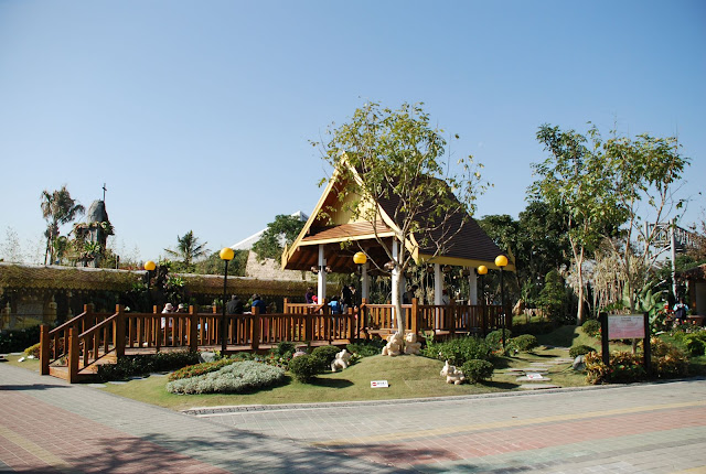 在熱帶雨林下的泰皇式涼亭,享受悠閒的SPA時光,舒適、和諧、寧靜、詳和,是人生享受的最高境界。 如果有路過這個泰國庭園,別忘了要給可愛的小象們一個特寫哦~ 很多人會在泰皇式涼亭這邊拍照,草地上有兩個對稱的太極圖樣的花圃。 許多遊客會投擲錢幣在水池裡的小佛像這邊,像是在許願一樣。