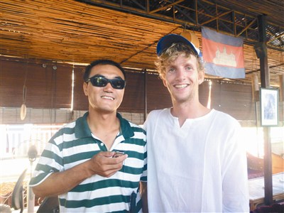 半年前,曹晟康做了一個讓朋友跌破眼鏡的決定。他轉讓了在北京經營了十多年的盲人推拿店,到海南練習駕駛帆板,參加帆船比賽,朋友們覺得他瘋了。經歷了「大風大浪」後,決定當背包客徒步出國旅行。「我想成為第一個完成環球旅行的盲人。」終於,曹晟康在一名自告奮勇的網友幫助下取得簽證,二人相約四月十七日在雲南普洱會合,經磨憨口岸進入寮國,過了沒幾天,兩人就在萬榮分手,曹晟康開始獨自繼續後面的旅程。這下子他才知道,一個不會說英語的盲人身處異國簡直是寸步難行。