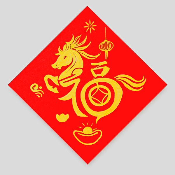 九天春節假期剛畫上了句點。雖然我早已非上班族群,但心理上總覺得該與大家一起收心。 聽到一句有趣的話:今年春節一半的人在日本,一半的人在台南,可見台南是頗受民眾喜愛的古都。 我依往例,大年初二回台南娘家。六天五夜在台南期間,除了與家人外出吃飯,幾乎都宅家,未到熱門景點走春,主因是媽媽與妹妹都不喜歡出門,原本喜歡走走逛逛的我,只好勉強配合。 假期結束前一天,突然興致到來,走進美術社買了一隻金色油性筆、兩張紅色紙,再參考網路上短影音,試著畫了三張結合馬年與福氣意象的春貼。除了與家人團聚的歡快,第一次嘗試畫春貼,也帶來了一種成就感。 祈願今年自己能如春貼上表現的意象---馬年福氣滿滿! (完成後放地上拍照,因未完全服貼地面與光影等因素,以致色彩無法均勻,所以再請AI協助將畫面修改平整。) |