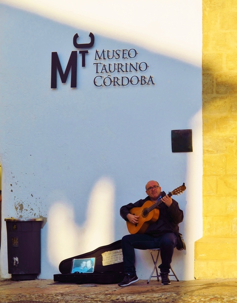 在西班牙哥多華巷弄轉角,一位街頭藝人彈著佛朗明哥吉他音樂。吉他盒中放著年輕時與西班牙吉他大師「帕克狄路奇亞」的合照,可能期望藉由名家為自己的演奏加分、來往觀光客能投入更多打賞金,但我卻被他專注的神情及投射的巧妙光影所吸引,這無疑是一幅最美的風景。