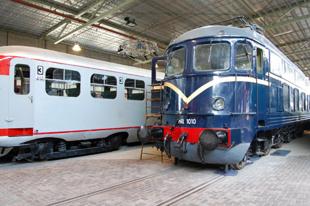 既然如此,不要浪費時間,趕快開始參觀吧! 博物館公關帶著我們穿過大廳的另一邊,通過一道門,眼前出現了一個月台,月台上停著幾輛老火車; 接待員說這個火車博物館的功能很多,除了展示的功能之外,也提供包場辦活動的服務,所以如果有人包場,是可以在這個月台及老火車上擺上餐桌的。接著我們走過鐵路平交道,到達博物館的另一邊,這時博物館公關說,這個平交道是有在使用的,因為在博物館開館的日子,遊客可以由烏特勒支火車站搭乘專門的火車到達火車博物館的月台,單趟旅程時間為十九分鐘,每個小時發車一次,往返車票為兩歐元。這真是個有趣的服務 - 由火車站搭火車到火車博物館看火車 !!