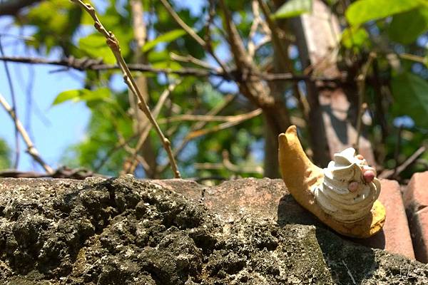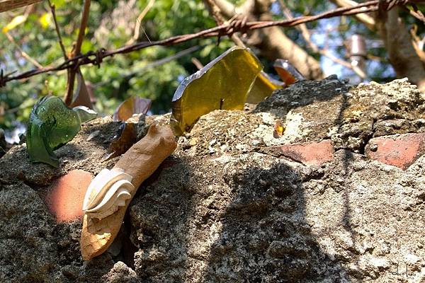舊時防盜的碎玻璃圍牆何時多了這麼可愛的蝸牛?