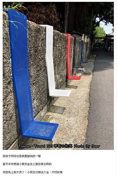 【整區321巷都是我的自拍館】之把公共藝術-彩色長條椅當展示台地踩在腳下。