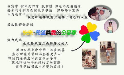 我的BLOG請到 http://blog.xuite.net/erickhera.tw/nomore 快樂希望愛的分享家~徐培剛~ |
