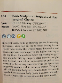 選用德國『工藝』來做文章的標題,主要是針對「工藝」一詞,有著頗深的認同感,工藝一詞用在現在很夯的文創:為人類生活智慧的結晶,我們生活的物品,加上「美的技巧」,產出美學價值稱為工藝,所以會有日本傳統茶藝結合現代工藝精神,引此打造風靡全世界的品茶時尚;工藝用於時尚精品,常看到他們將透過手工製作出每項精品的藝術家及製作者,稱做工藝大師;媒體就大篇幅報導「專注工藝愛馬仕成就極致精品王國」。 「工藝」一詞用於體雕,於整形手術上操刀的醫生,透過良好技術成就美麗體態、完美曲線,使用最好的儀器,縮短手術時間,減輕病患術後疼痛及瘀青腫脹狀況,以達到患者追逐美麗過程中良好體驗,所以整形醫生與工藝大師也是擁有同樣熱情及精神完成每個體雕手術。怎樣善用手上的工具,在理想與現實中,手術與非手術中,找到每一位追求者的完美形象,則成為了一位體雕整形美容醫師的終生職志。 這次與會的70位巨星來賓都是來自於國內外對於皮膚美容,整形手術,學有專長的一時之選。由此證明大會的學術組與秘書處想必花了很大的心血來確認與邀請這些來賓。 這次體雕的大會演講,邀請國內知名的皮膚科權威楊弘旭醫生及王朝輝醫生共同擔任座長,王朝輝醫生負責演講:抽脂手術的皮膚科醫師觀點,韓國,安敬天醫師則進行軀幹部位體態雕塑的手術說明。而周醫生則演講:非侵入與侵入體雕工藝的完美平衡。我們幾位醫師,在演講前也做了一些心得的交換。尤其對於台灣與韓國對於身形的美感與需求,做了大量的心得交換。