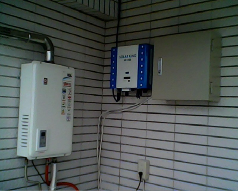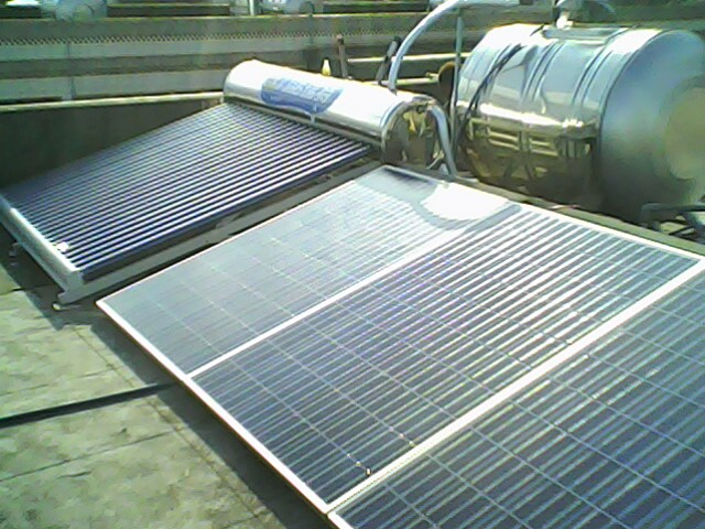 太陽能熱水器結合恆溫型天然瓦斯熱水器與太陽能發電控制系統(併聯與獨立兼備的混合型系統) 我們為總務主任安裝的是混合型的太陽能發電系統,兼具降低電費與防災的雙重效果與功能。混合型的太陽能發電系統 兼具併聯型與獨立型的功能。 一、併聯型降低電費:太陽能所產生的電力直接併到家中的電力系統給家中的電器使用,所以台電的電表轉速會變慢、電表的度數會變少,所以電費會變便宜,甚至還可以得到台電的省電折扣,省上加省、電費降了又降。 二、獨立型可以防停電、防災:由於地球環境被破壞、暖化加快,颱風越來越厲害、天災越來越多,獨立型的太陽能發電配備電池,可以把電力儲存起來。當天災來臨、台電的電線桿倒塌、電力中斷時,則獨立型的太陽能系統會自動接手家中的配電系統,讓家裏有電可用,電燈不會熄滅,也可以有太陽能的插座可以用,讓電視、手機可以繼續使用,知道外面的情況並與親朋好友保持聯絡,所以具有防災的功能。 當天災來臨、社區停電時,有安裝獨立型太陽能系統的家庭就可以免於恐懼與慌亂,仍然有電可用,保持與外界聯絡,安全的渡過黑暗時刻,這時候,獨立型太陽能系統很可能就是停電時社區的安全保壘與希望的燈塔了。
