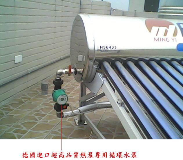 太陽能熱水器結合熱泵並採用德國進口熱水專用高級循環馬達 黃小姐花了二年多蓋了一棟大別墅,而且為每間浴室都安裝了可以泡澡的浴缸,她說,我們全家都喜歡在冬天泡澡。但是,為了安全,她不考慮裝瓦斯熱水器,裝電熱水器又不能泡澡(電費更會嚇死人),裝一般的太陽能熱水器在冬天電費一樣很貴,所以找我們為她的新家安裝太陽能熱水器結合熱泵,她說上網找資料研究了一年,還是裝我們這一套可以讓她放心。