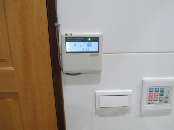 安裝在浴室門口、熱泵的智慧型電腦控制面板