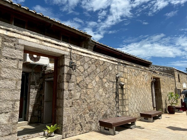 #圖一為馬祖藍眼淚(圖片來源:馬祖國家風景區管理處) #圖二為鐵甲元帥,對面為龜島,蛙與龜同守芹壁(圖片來源:馬祖日報) #圖三為板里大宅一隅;圖四為地瓜燒酒咖啡。 |