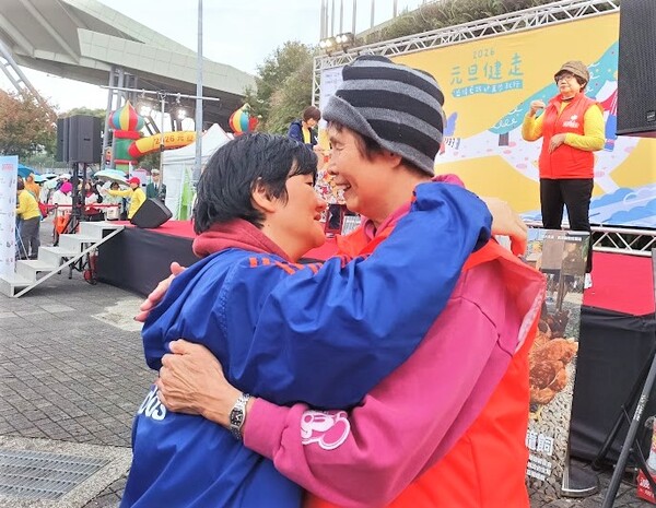 從2017年元旦開始,發哥與妻小跟隨紀政希望基金會舉辦的圓山元旦健走迎新年的腳步,期間,除了2019年元旦下高雄缺席外,今年是第九次帶妻小跟上圓山健走的腳步,每次參與小女兒已習慣要求跟紀政阿姨來張合照,才肯離去,每回都以此畫下健走的美好記錄,而今天與紀阿姨合影後,還熱情與妹妹擁抱一下,並相互加油明年元旦健走再來喜相會。