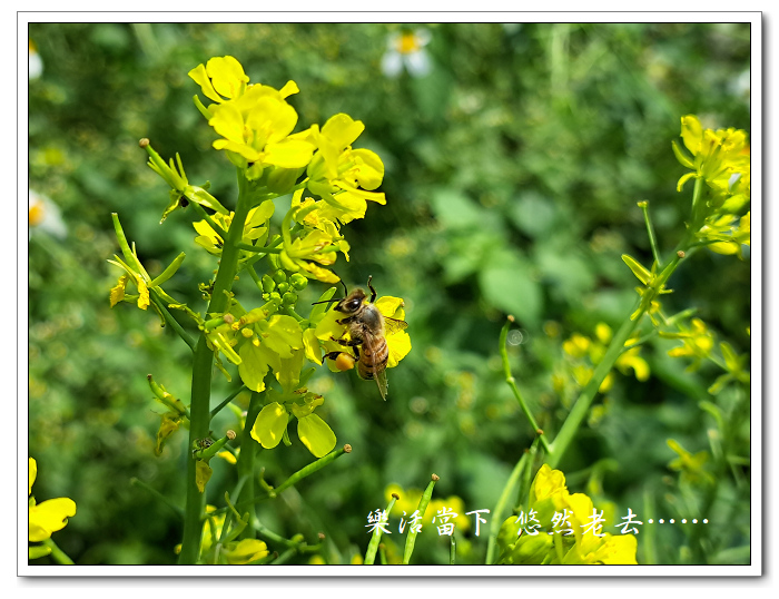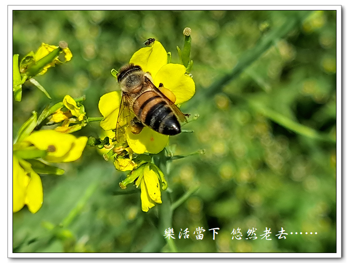 蜜蜂很愛芥菜花,也很捧場,整天都不時的有些蜜蜂來芥菜花上採花粉。