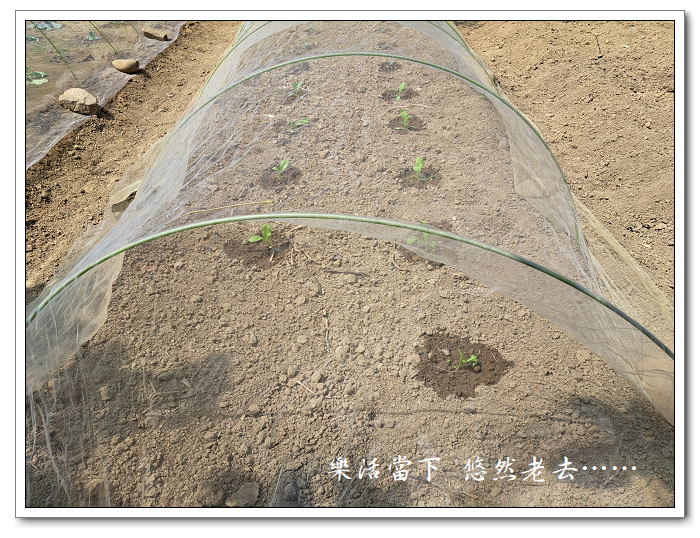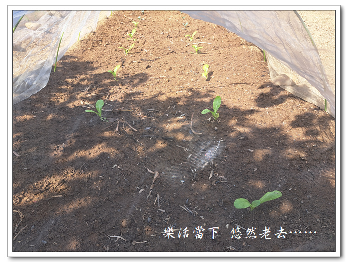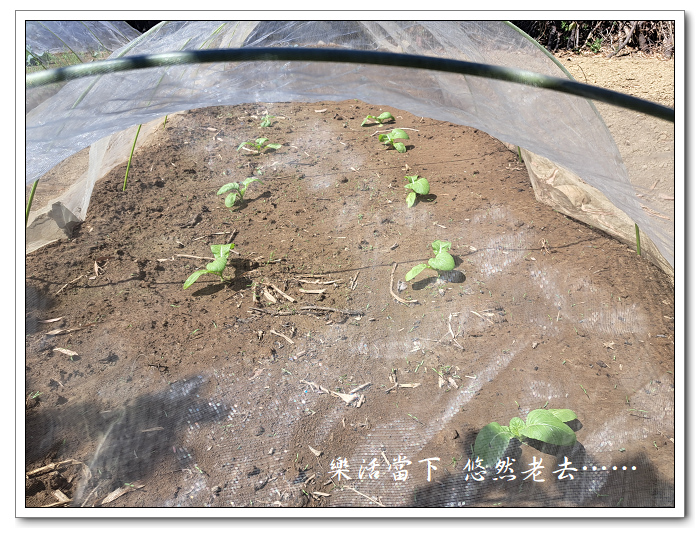 這一畦長度約6米,防蟲網長度10米,所以芥菜就和花椰菜種在同一畦上,共用一張防蟲網。