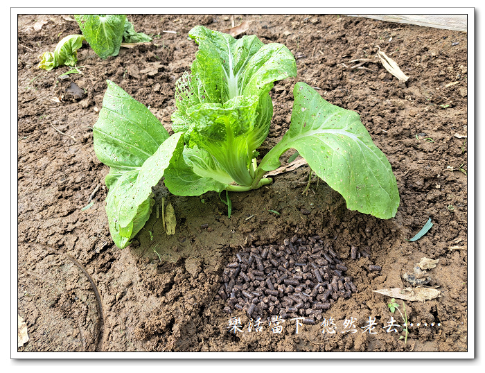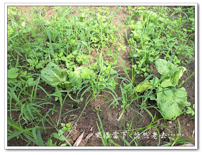 雖然芥菜還是沒有恢復原氣,而且泥土很溼難除草,還是趕快進行除草並施放一點肥料,希望它能早點站起來。