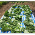 三天前摘芥菜可能是沒注意而疏忽了,今天怎麼突然發現芥菜都要開花了,所以一口氣將剩下的芥菜全摘下,幸好今天又是個好天氣,摘下後放在陽光下萎凋來醃製酸菜。