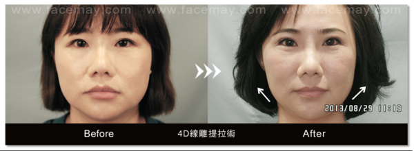 延伸閱讀: 台中美魔媽甄莉 完美4D線雕提拉小V臉 http://www.facemay.com/project.php?p=140#