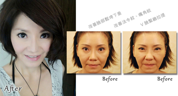 非常滿意術後成果~做完臉上有些緊繃感,臉確實有往上拉提很緊緻,做完真的法令紋淡很多,連嘴角也往上拉提。希望想要擁有小巧V型臉的水水們有所幫助~ 案例分享