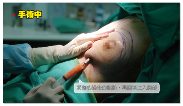 此次療程準備將由我的腰部及大腿抽出多餘脂肪,經過離心後並填補於我的咪咪達到完美自然豐胸~