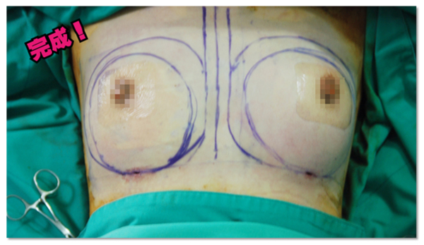 在進行自體脂肪移植豐胸時,會將客戶指定胸型畫上MARK標記,這能夠幫助醫師更精準的掌握部位,並身體進行徹體的消毒以及麻醉,將感染的機率降至最低。