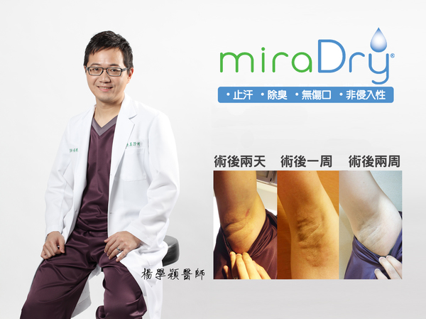 夏天就要來臨,許多有腋下出汗或是狐臭的患者在夏天總是特別困擾,過去許多患者只能依靠手術解決自己的困擾,但有許多患者害怕手術,輕微狐臭患者不敢做旋轉刮刀手術、多汗症又怕交感神經阻斷術怕出現代償性出汗的問題,直到最新的微波技術出現,不需要開刀就可以治療多汗症與輕微狐臭的miraDry微舒淨! 第一台不需要開刀就可以除去汗腺治療多汗症的機器-miraDry