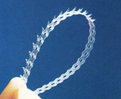 「八爪拉皮」比五爪拉皮還要晚引進,也是利用人體可以吸收的乳酸和果酸聚合物材質所製成,約8~12個 月即可完全被人體吸收,八爪固定釘柔軟如緞帶,和五爪固定釘都因為有更多點可以固定來達到拉皮的作用,透過它底部八個倒爪鉤,能夠把想要拉提的下垂肌肉往 上拉提固定,所以可順著臉部或脖子曲線,可用來拉提中、下臉及頸部曲線,所以非常適合曲線呈弧線的臉部及頸部皺紋的改善。