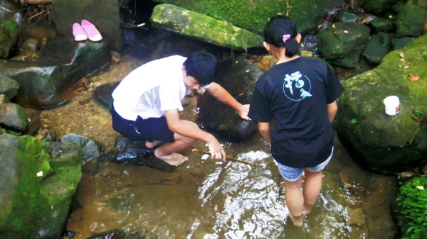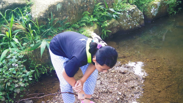 平常 常喊腳很熱不舒服 來這泡山泉水真棒 媽媽很喜歡這