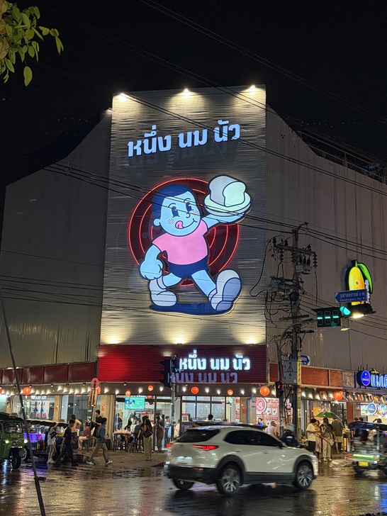 朱拉隆功夜市著名的牛奶小子 是熱門排隊甜點 也是打卡聖地