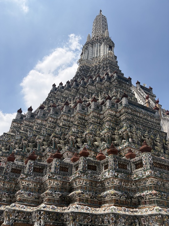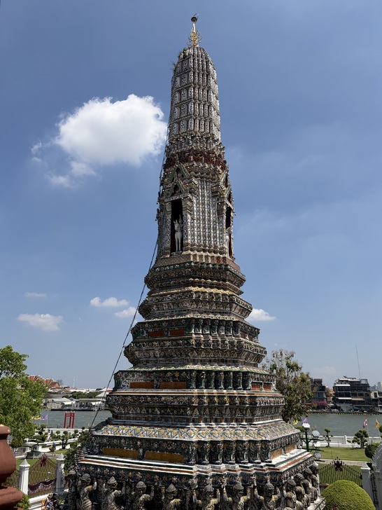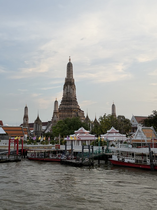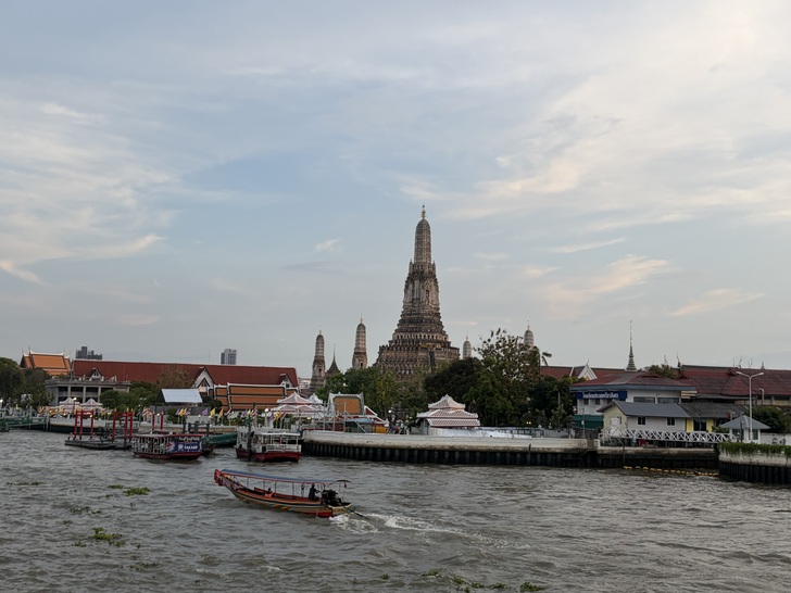 黎明寺(又稱鄭王廟、曉寺)是泰國規模最大的大乘舍利式塔,外觀潔白莊嚴,再加上鄭王廟就位於昭披耶河畔來往都會看到,被網友稱是「泰國埃菲爾鐵塔」。