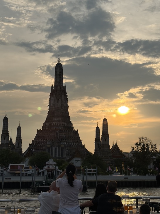 太陽西下 遊河的活動進入尾聲 好棒的遊河體驗 好美的昭披耶河 感受曼谷的活力與魅力 盡情享受船上的歡樂與浪漫的時刻。