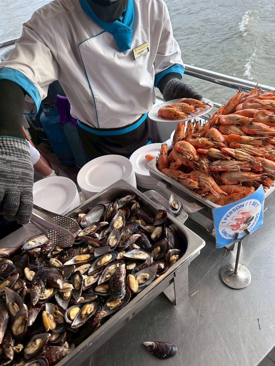 坐郵輪遊河 吃buffet 是我們的第一次 相當期待(感謝Emily的泰國同學提前幫忙訂票)