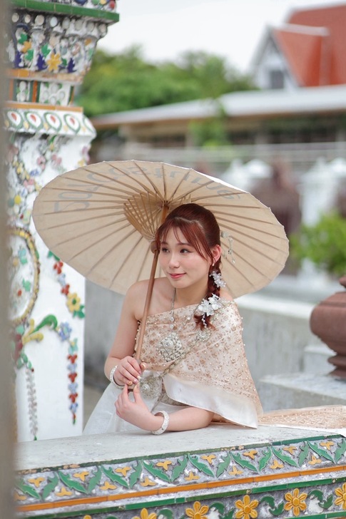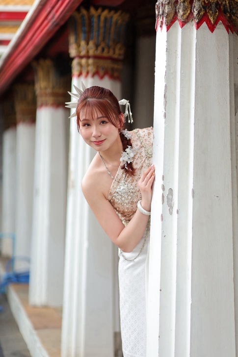 在這裡看到很多穿著泰服的遊客, 我也想看看穿泰服的自己是甚麼模樣, 隨興找了一家可以用英文和簡單中文溝通的店家, 做完妝髮 我和Bonnie興奮地跟著攝影師走 期待拍出美美的泰服照來。