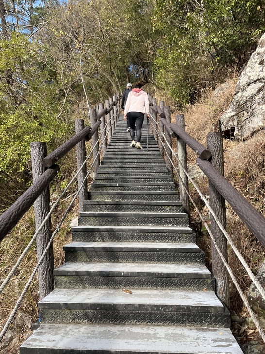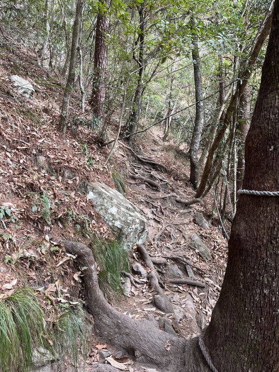 步道一開始是下坡 坡度還行 一旁設有繩索輔助