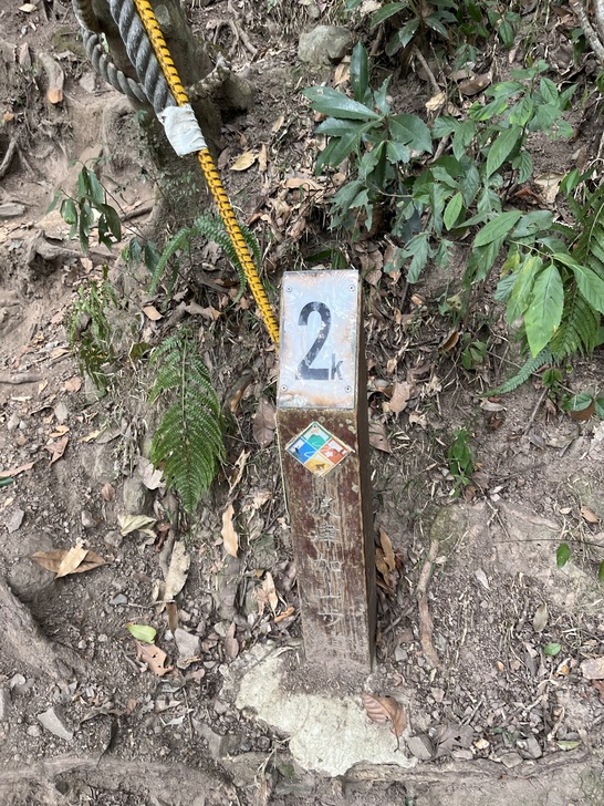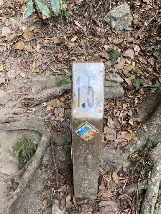 汗流浹背來到1.5K 每500公尺一座的里程樁 是攀爬過程中最大的鼓勵 代表我們又前進了一大步