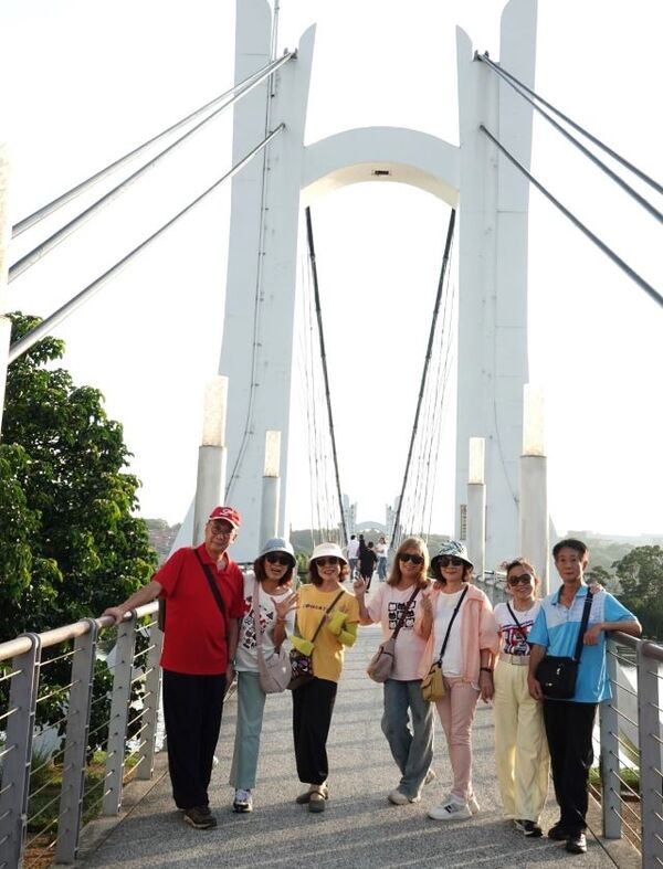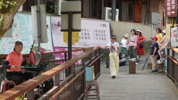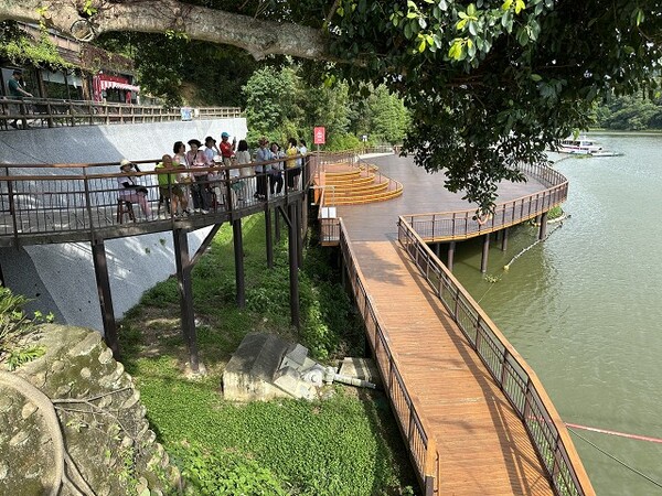 走過「細茅埔吊橋」瀏覽「峨嵋湖」景色、稍事停留