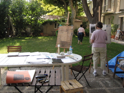 1839年1月19日,保羅塞尚出生於艾克斯,1906年10月23日於艾克斯自宅去世,今年正好是塞尚逝世一百週年,大家跟著地上刻著Cezanne名字的方形銅雕標誌,拜訪塞尚的出生地、求學的學校、受洗的教堂、畫室、……當年憂鬱而孤獨的塞尚,大概很難想像今天人們自世界各地來到艾克斯,只為了跟著他的腳步,對這城市來次巡禮。 在塞尚的家鄉,我上午法文課,下午學畫畫,從未正式學習繪畫的我,直覺覺得,能在這裡學畫應該是一件很酷的事,果然,老師Monique的家族已經在艾克斯六代了,她的曾祖父還是塞尚的好友,這…會不會太巧了?我的繪畫課只有一位同學,是個美國老太太,天氣好的時候,我們就在院子裡作畫-其實艾克斯總是豔陽天,天氣不好,指的通常是風太大。
