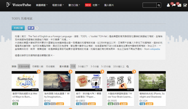 不知道有沒有人像小編一樣要準備托福考試呢? 一、聽 托福考試聽力的出題情境幾乎是課堂講課,所以各式各樣的題目都有可能出現,像小編之前考試就遇到科學、文學、生物等等,其實有點像國外大學的上課內容喔!所以廣泛吸取新知是很重要的! 1. VoiceTube